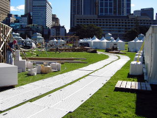 TrakMat® block damage to turf, saving you hundreds in restoration costs. Chemically inert, TrakMat® are the safe choice for sensitive sites, and — being a heat-resistant light green — the only choice for green businesses.