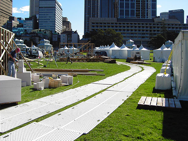 TrakMat® ensured safe, clean access across the lawn at the 2004 "Sydney In Bloom" at The Domain, Sydney NSW